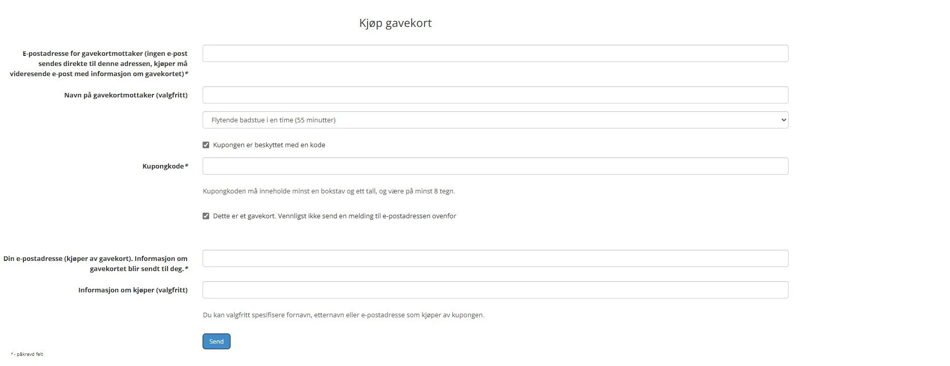 Mailadressen til den som skal få gavekortet for at vi skal ha i bookingssystemet vårt.